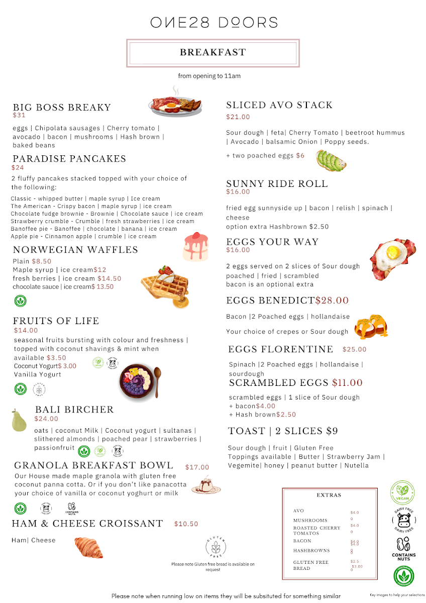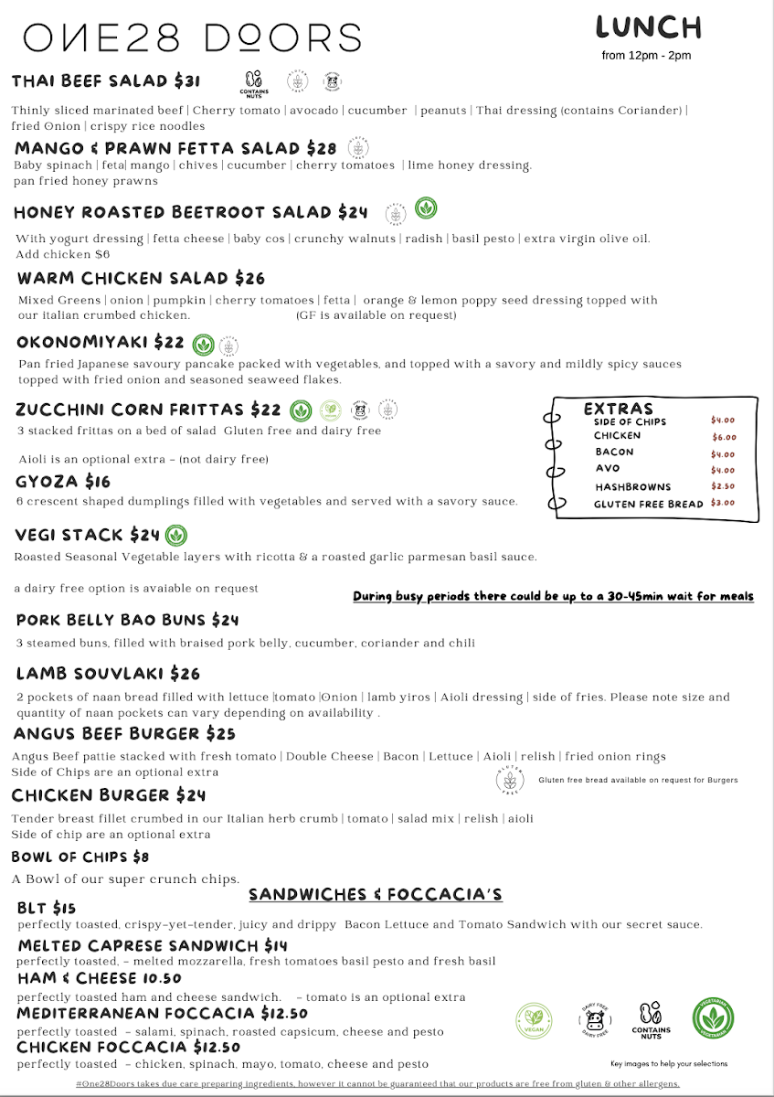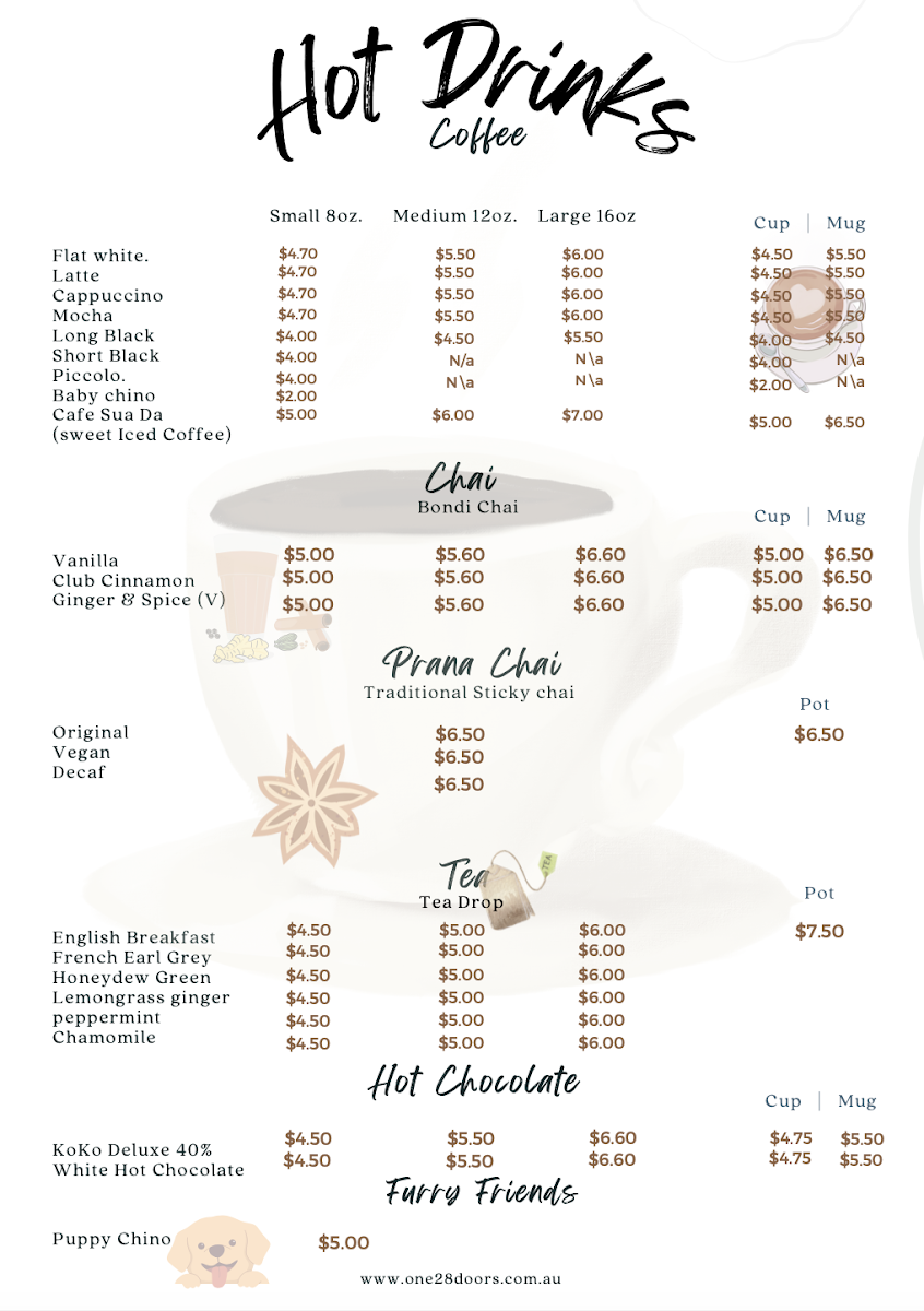 The moment you step inside, you're greeted by a beautifully styled space that combines modern design with a touch of eclectic charm. With friendly service that makes you feel right at home, One28 Doors is a haven for coffee lovers and food enthusiasts alike.